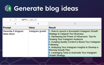 GPT for Sheets™ e Docs™ é um complemento gratuito para o Google Sheets e Docs, que integra as funções e capacidades do ChatGPT. Como resultado, os usuários podem se beneficiar de recursos de IA dentro dos dois aplicativos.